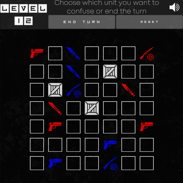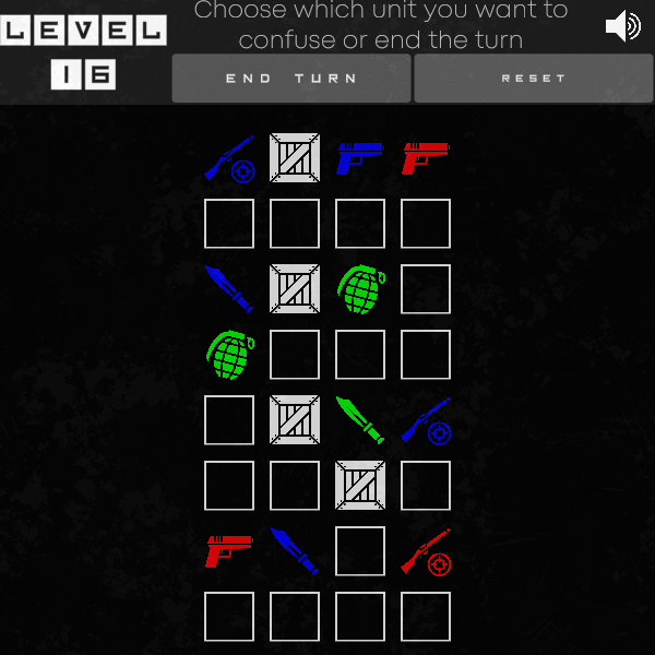 Solve 28 puzzles where your goal is to make all armies eliminate each other. Once per round, you can confuse up to one unit. If a single army remains standing—or if no one is eliminated during a round—you fail the puzzle.